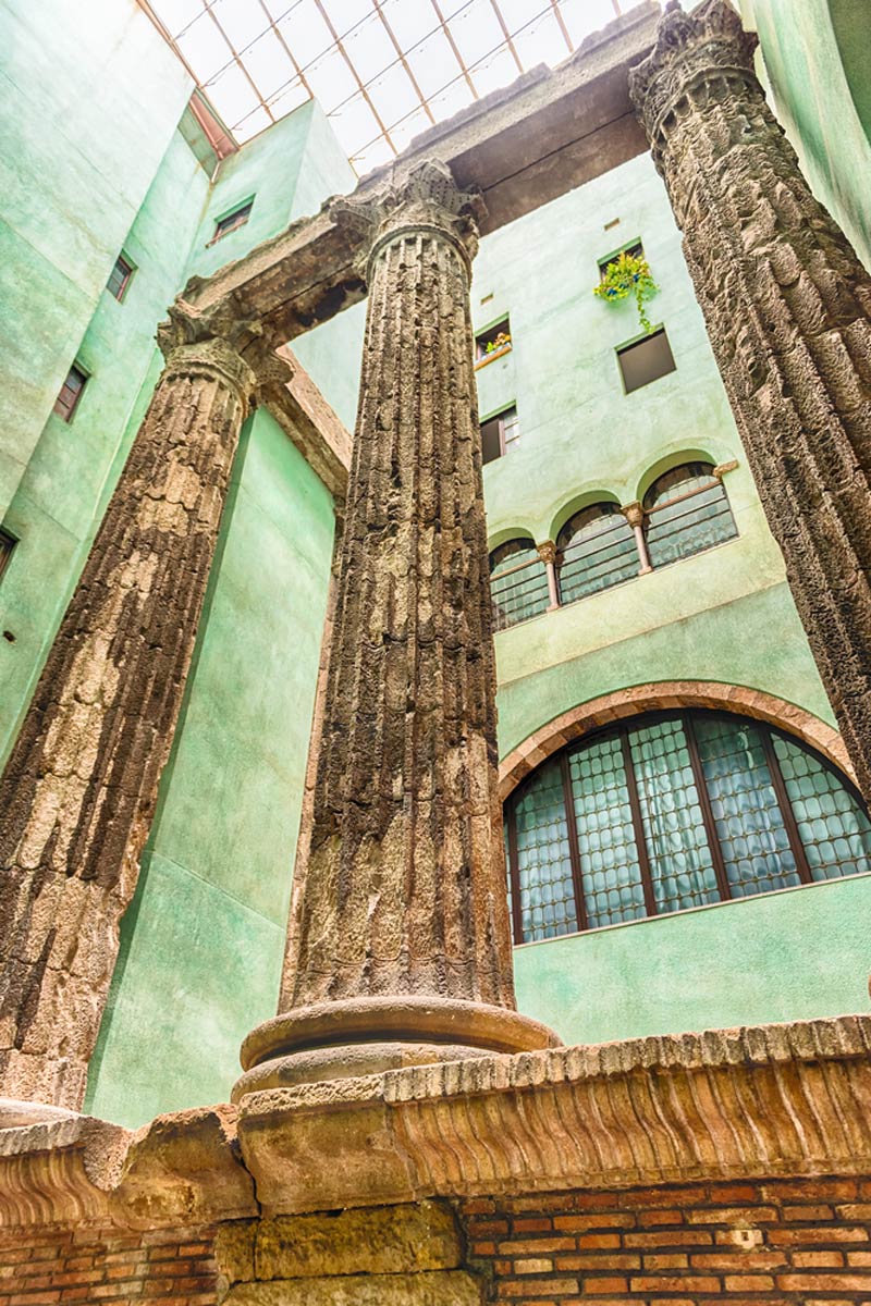 This one is a bit (maybe more than a bit) of a hidden gem due to its secret spot inside the Centre Excursionista de Catalunya building in the Gothic Quarter. But, the Temple of Augustus is nonetheless a historical landmark in Barcelona everyone should visit.